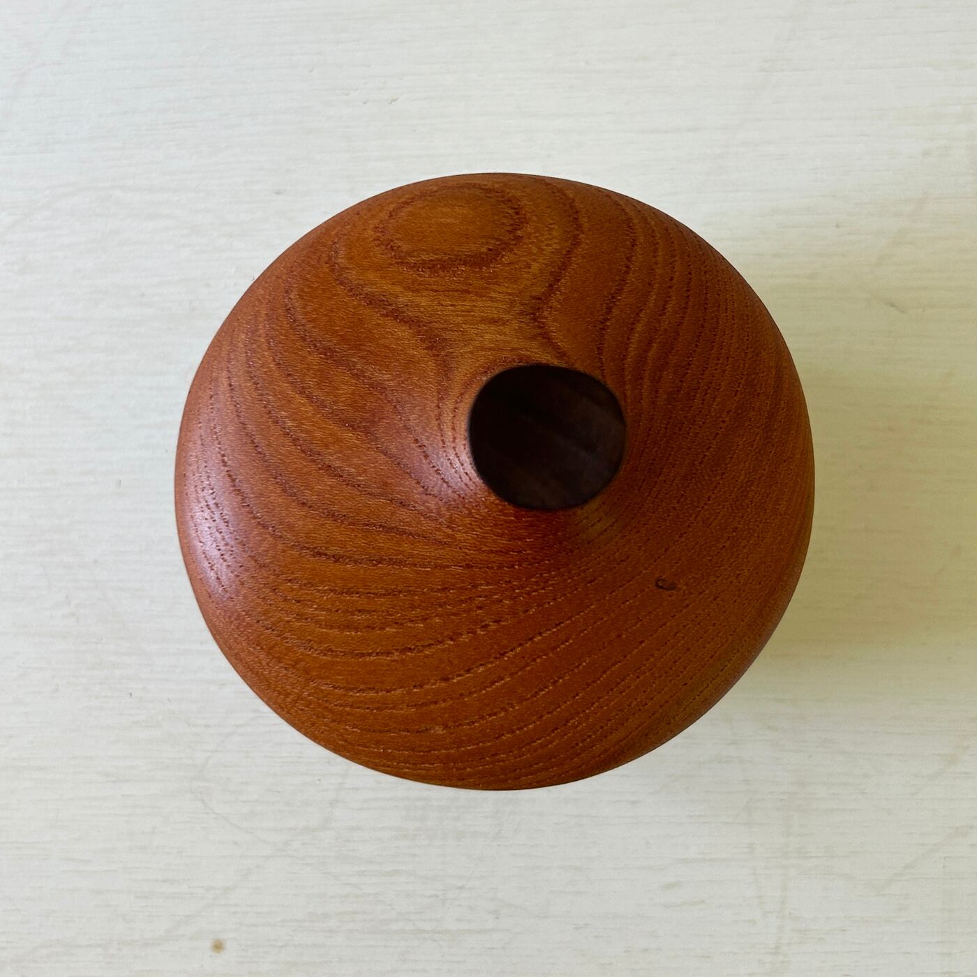 木目が鮮やかなケヤキの蓋に、小さめのツマミをそっと乗せてみました。