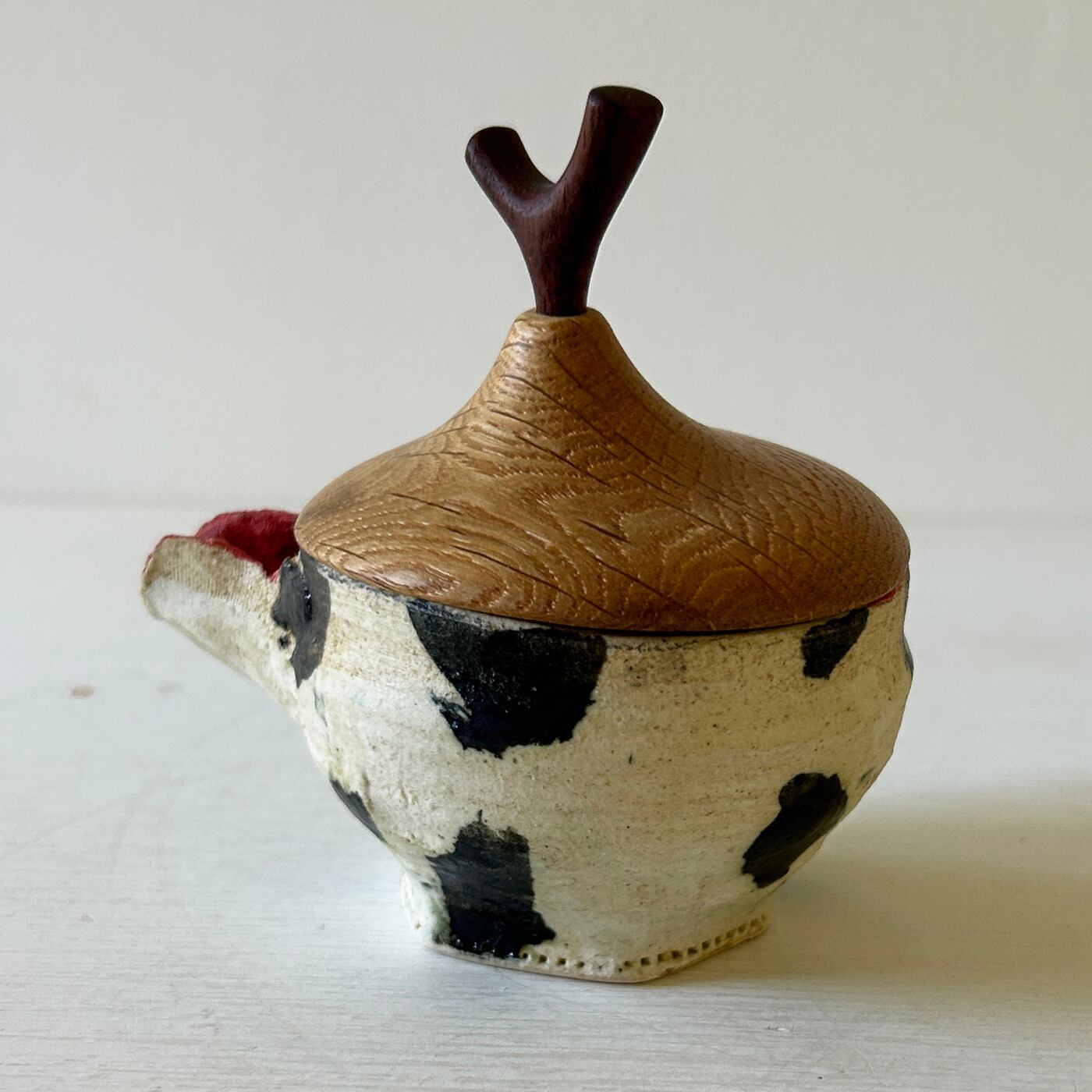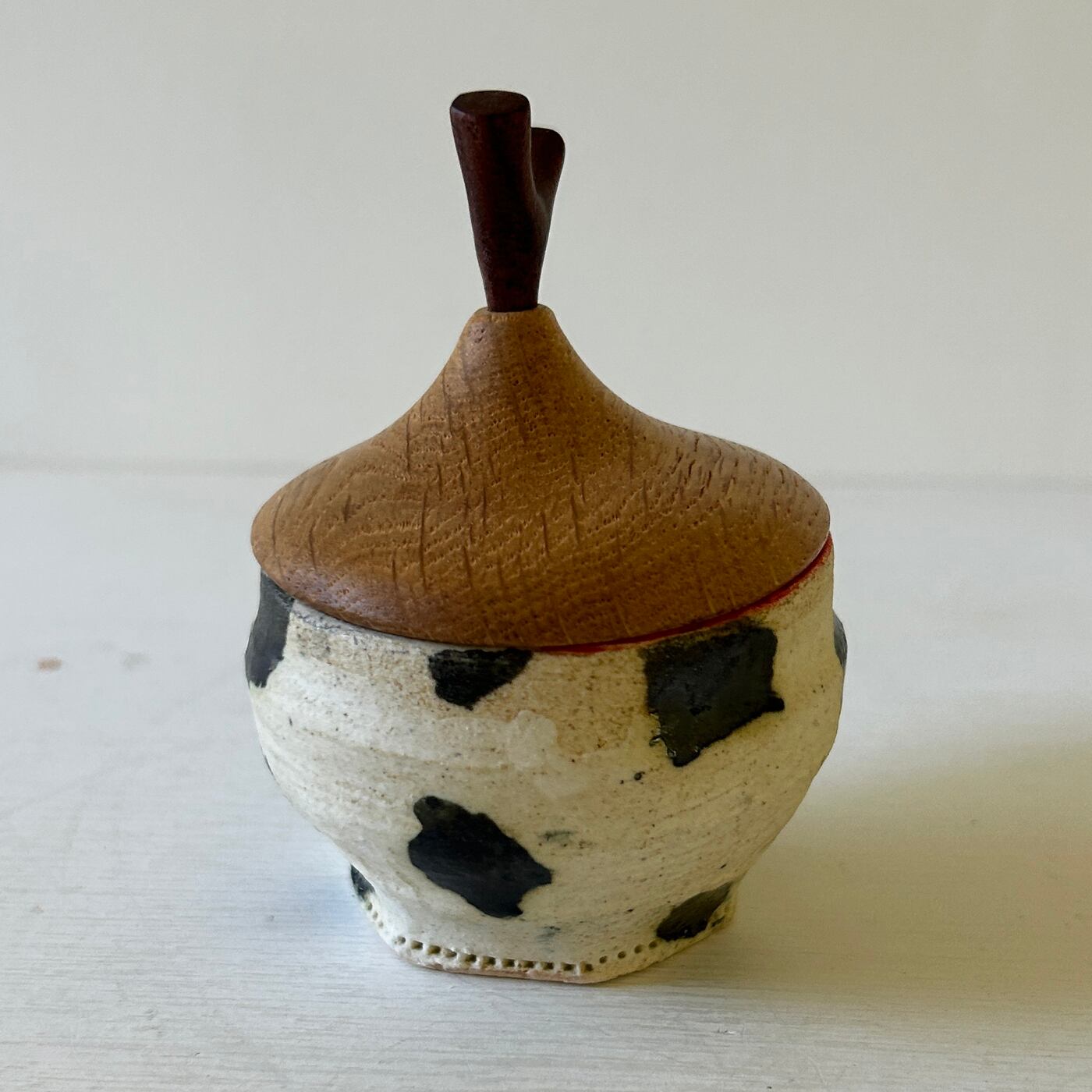 ナチュラルなナラの蓋に、小枝風のツマミを乗せてみました。