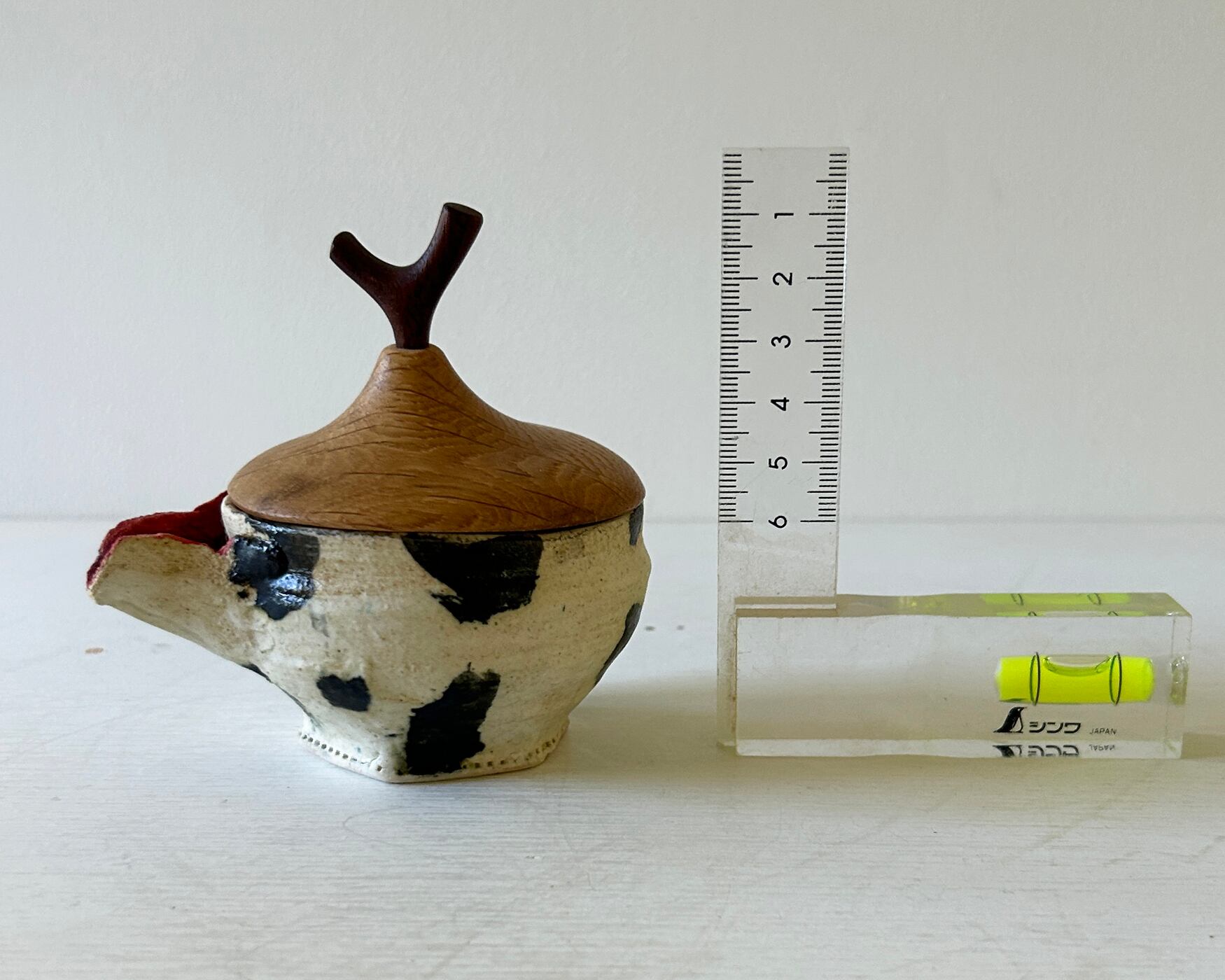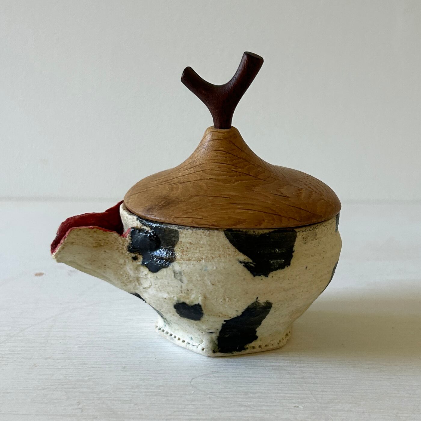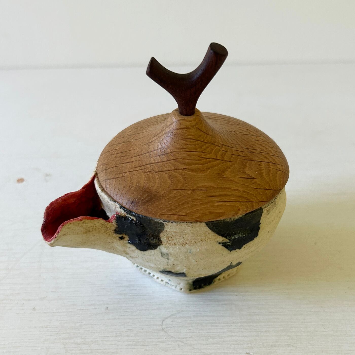 注ぎ口にちらりと見える赤色が紅を差したようなキュートな作品です。