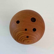 蓋にはケヤキを用いて、どこまでも柔らかく丸みのあるふんわりとしたフォルムにまとめました。渦巻きのような美しい木目と、ランダムの施したドット模様がポイントです。ドットの底にはウォールナットで埋木をしてあるので、クッキリと見えます。