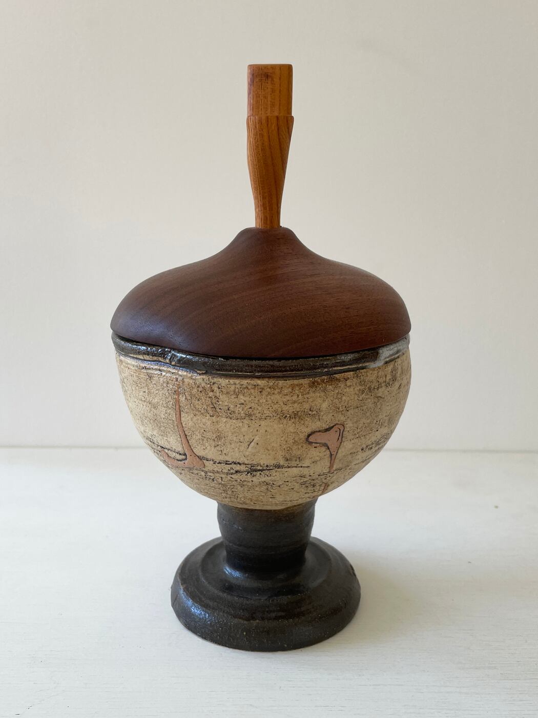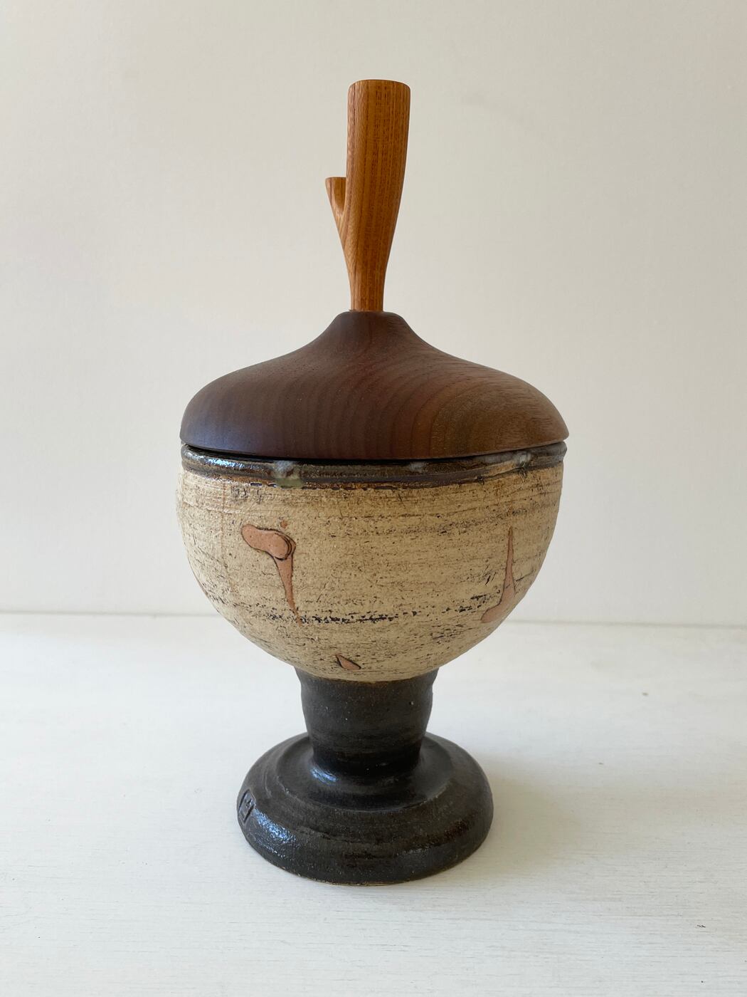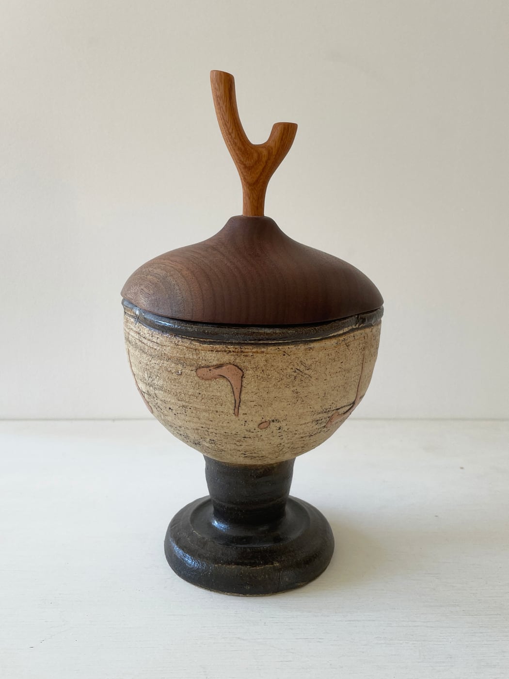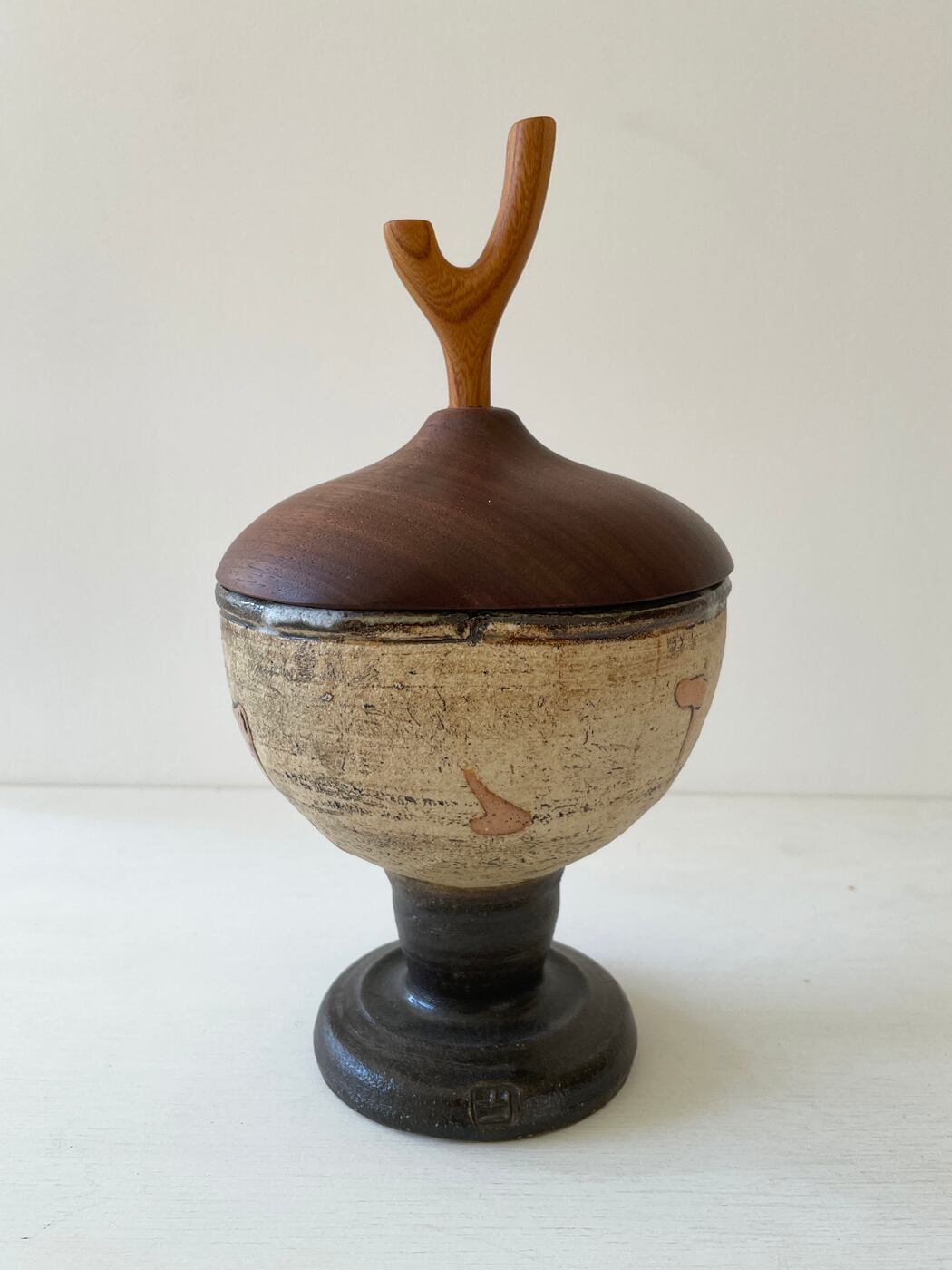 今回ご紹介するのは、高坏型の蓋物作品です。