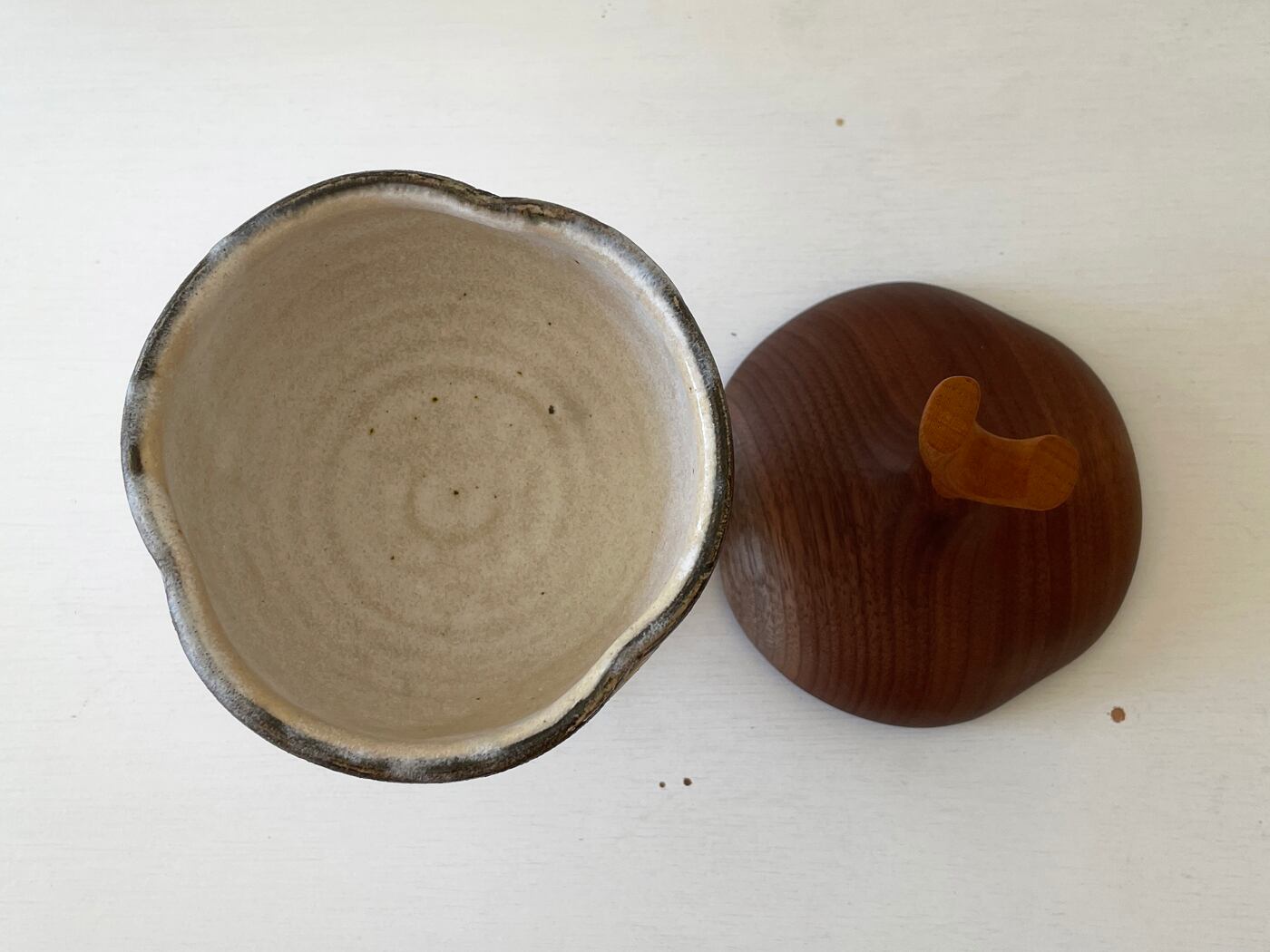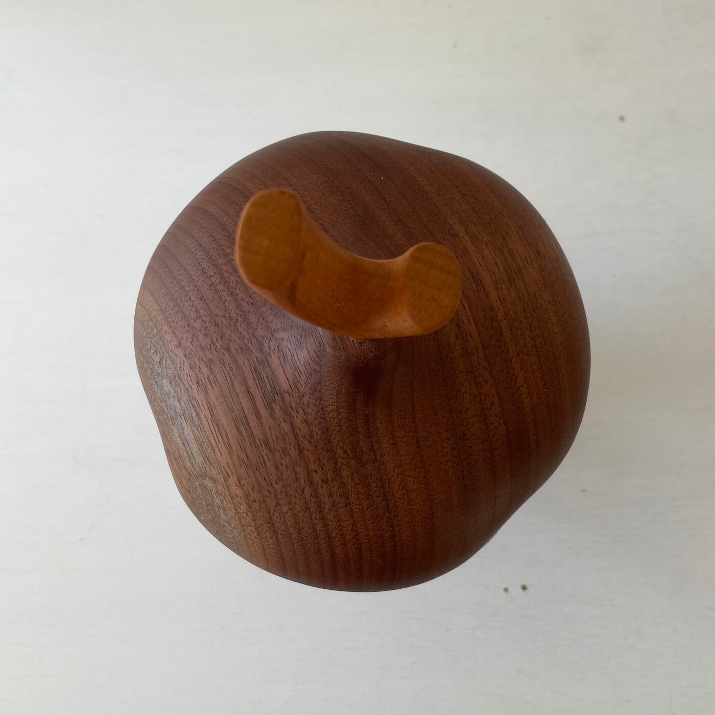 三花弁に合わせたウォールナットの蓋と、ケヤキの小枝風ツマミがアクセント。