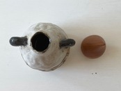 一輪挿しに蓋を付けるという、斬新な発想から生まれた不思議な佇まいの作品です。