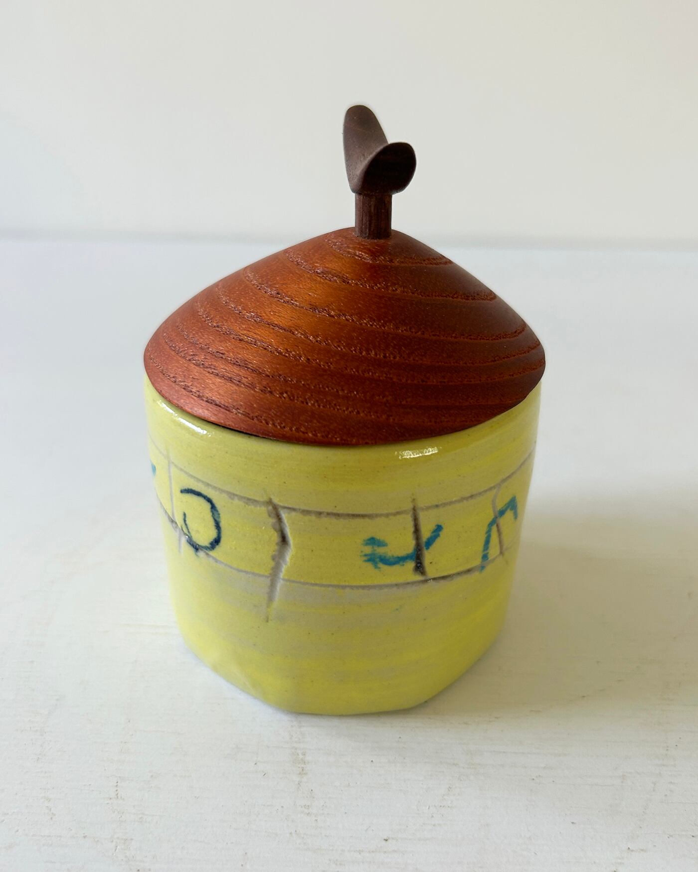 鮮やかな黄色の地に、引っ掻き紋がアクセントです。
