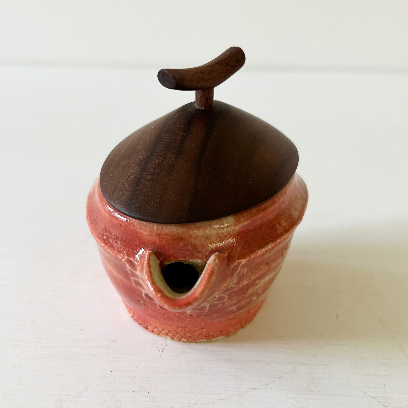 三角帽子のような蓋に、小枝風のツマミを合わせてまとめました。